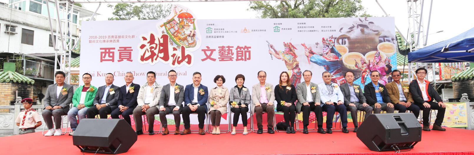 【香港商報网訊】由西貢區議會贊助,西貢區議會藝術及文化工作小組、西貢民政事務處、西貢區盂蘭勝會合辦的首個「西貢潮汕文藝節」,於11月25日在西貢天后廟廣場和萬宜游樂場舉行。出席啟動禮的嘉賓有民政事務總署副署長黃海韻、西貢區議會主席吳仕福、中聯辨新界工作部副部長楊小嬋、西貢民政事務專員趙燕驊、香港警務處黃大仙警區社區聯絡主任郭赞榮、西貢區康樂事務經理李嘉美、西貢區鄉事委員會主席王水生、坑口鄉事委員會副主席溫超玄。這是西貢首次舉辦的潮汕文化巡游,巡游隊伍有英歌隊、盂蘭搶孤隊、潮州鑼鼓標旗隊、彩旗隊、「請老爺」、姿娘彩籃隊、虎獅隊等,以及西貢潮人發展史,香港潮劇文化展覽,與時俱進寓意節慶吉祥的「3D 拍攝區」,將孝慈美德與傳統和科技相互結合的「VR 虛擬實景體驗」,通過各互動攤位讓市民和游客了解潮人文化,同時品嘗潮州功夫茶,感受潮州人待客之道,還有「潮游西貢導賞團」活動等。活動統籌胡炎松帶領嘉賓參觀各攤位,并品嘗功夫茶及潮汕五色禮餅等特色美食。西貢區盂蘭勝會會長胡艷光致辭表示,西貢區以青山碧海的自然景色聞名,素有香港后花園美譽。西貢區潮人首次舉辦潮汕文藝節,可以讓西貢區居民及游客了解西貢多元族群文化歷史。