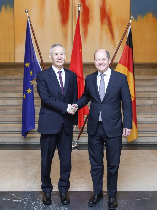 劉鶴表示,中方願同德方一道,落實好兩國領導人達成的重要共識,推動中德金融、貿易、投資等領域合作不斷深入發展。