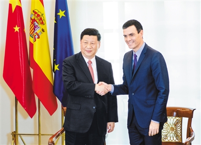 習近平指出,很高興連任中國國家主席後首次訪問歐洲來到西班牙。雙方要加強高層交往對兩國關係發展的政治引領,密切政府部門和立法機構交往合作,深化政治互信,繼續在涉及彼此核心利益和重大關切問題上相互理解、相互支持,推動兩國關係行穩致遠。中西開展「一帶一路」合作具有歷史、地理等多重優勢,要加強「一帶一路」倡議同西班牙亞洲戰略、地中海走廊建設等對接,促進經貿往來,拓展港口、航運、航空、新能源汽車、金融等領域合作,優化科技、創新合作。雙方要深化人文交流,加強文化、地方、旅遊、醫療、文化遺產保護、體育等領域交流合作。中國願同西班牙繼續就完善全球治理、應對氣候變化等國際和地區熱點問題保持溝通和協調。