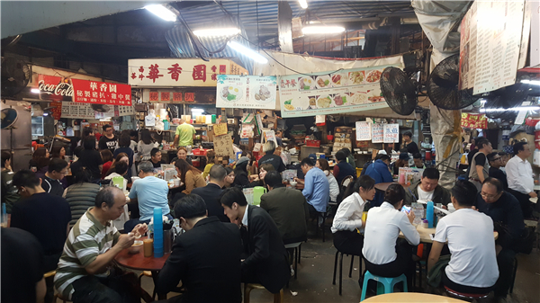 置身海防道臨時街市,恍若走入時光隧道,沒有冷氣,只見鐵棚天花、帆布、鐵絲網,熟食檔口通道窄,座位亦十分逼狹,一派懷舊街市情調。事實上臨時街市自1978年起啟用後,足足「臨時」40年,是全港4個臨時街市(其他3個是通州街、深井和洪水橋臨時街市)之一。它當年的出現,是安置在北京道1號的大排檔和小販。
