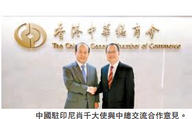 【香港商報网訊】中國駐印尼大使肖千與政治主任王世焜日前到訪香港中華總商會,與中總會長蔡冠深、副會長胡曉明、對外事務委員會主席陳光明、副主席高敏堅及林增榮以及婦女委員會主席蔡關穎琴等進行交流,就如何善用香港優勢,推動中、印及香港等地經貿合作交換了意見。