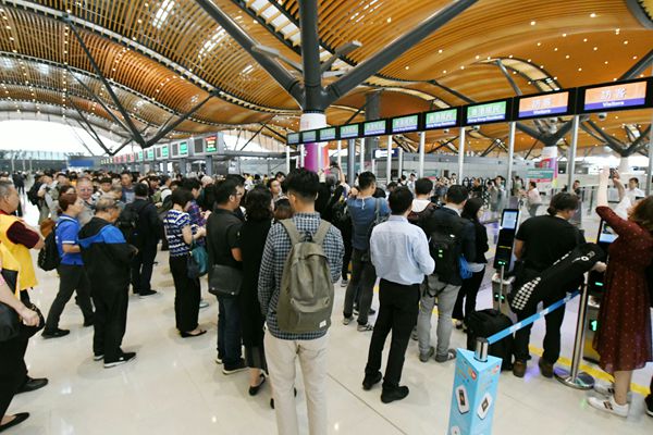 港珠澳大橋通車令本港旅遊業受惠。圖為大橋珠海公路口岸旅客入境情況。