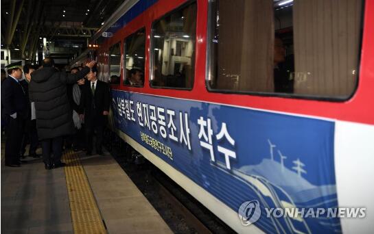 海外网11月30日电当地时间30日上午,一辆载着韩国考察人员的列车从首尔火车站发车,北上都罗山站跨境赴朝考察朝鲜铁路。由此,朝韩当天正式启动铁路联合考察工作。