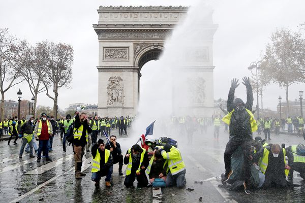 示威者與警方在香榭麗舍大街、杜伊勒里花園等地發生衝突,後者被迫使用閃光彈、催淚瓦斯和高壓水槍。 路透社