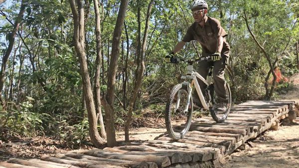 訓練場提供不同難度的徑道,分初、中及高級。圖為國際越野單車協會路徑專家林暉明在不同難度的單車徑道作示範。