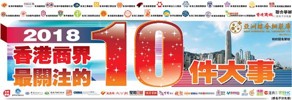 【香港商报网讯】由香港商報聯同香港中華總商會、香港總商會、香港中華廠商聯合會、香港工業總會、香港中國企業協會、香港中國商會、香港專業聯盟、香港中華出入口商會、香港工商專業聯會、九龍總商會、香港廣東社團總會、香港潮州商會、香港潮屬社團總會、香港福建社團聯會、香港僑界社團聯會、香港經貿商會、新界總商會、香港工商專業協進會、香港廣西社團總會、香港工商總會、香港客屬總會、新界社團聯會、香港江蘇社團總會、香港珠寶總商會、香港中小企業發展論壇(排名不分先後)等本港各大商會、社團,共同舉辦的「2018香港商界最關注的10件大事」評選活動,從今天起正式展開。這評選活動由香港中基1號慈善基金會冠名贊助。