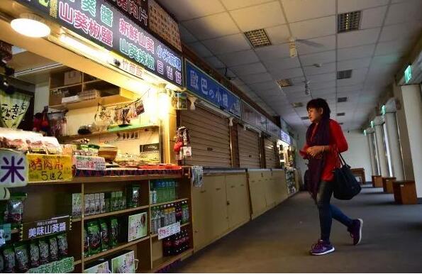 ▲民进党上台后“冰冻”两岸关系导致台湾经济受到重创,图为阿里山景区不少店铺关门歇业。(新华社)