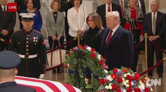 【环球网报道记者 左甜】美国有线电视新闻网3日最新消息,当地时间12日3日晚上8点半左右,美国总统特朗普和第一夫人梅拉尼娅前往国会大厦圆形大厅瞻仰老布什灵柩,并敬礼,向已故前总统表达敬意。