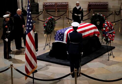 据此前报道,3日下午5点左右,老布什的灵柩送抵美国国会大厦。当日晚上7点半至8点45分,公众前往瞻仰。瞻仰期结束后,老布什的灵柩将于当地时间5日被运往华盛顿国家大教堂,在那里举行国葬仪式。