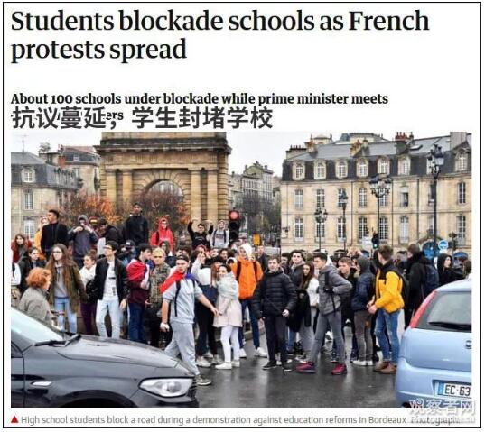 这大约100所学校有的完全被封堵,有的部分被封堵,学生们是借此机会抗议法国此前的教育改革。