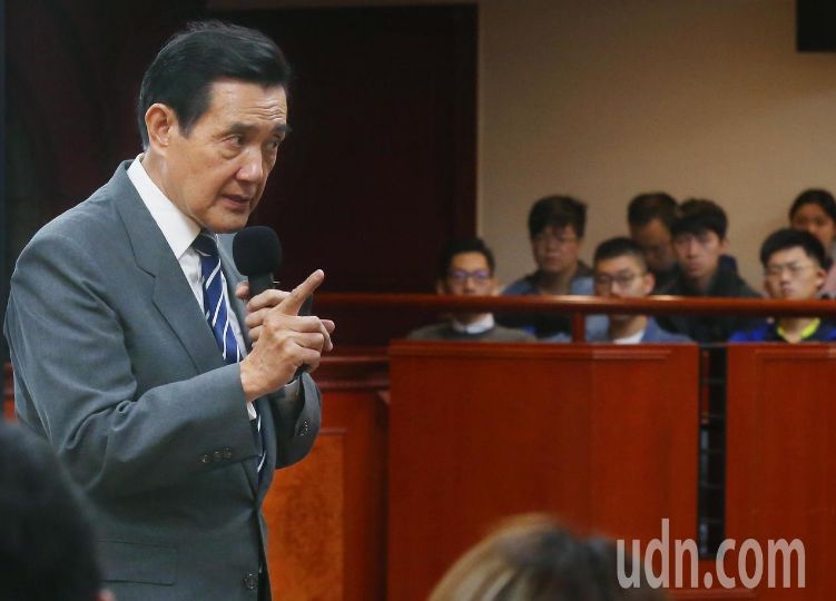 马英九(左)上午在东吴大学演讲,现场有大陆生与本地生一起听讲。来源:“联合新闻网”