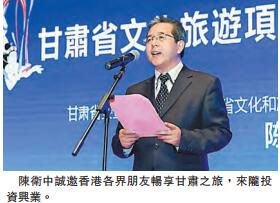 【香港商報网訊】記者呂明霞報道:為宣傳甘肅文化旅游資源、推介文化旅游產品、簽署文化旅游項目合作協議,「甘肅省文化旅游項目推介簽約活動」昨日假皇冠假日酒店舉行,甘肅省副省長常正國,中聯辦宣傳文化部副部長朱挺,外交部駐港特派員公署參贊兼辦公室主任楊嫻,甘肅省政府副秘書長石培文,省委宣傳部副部長、省文化和旅游廳廳長、省文化博覽局局長陳衛中,香港剛毅集團董事長、中國全聯旅游業商會執行主席王敏剛等出席了活動。