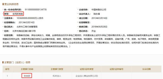 根据国函〔2013〕47号《国务院关于组建中国铁路总公司有关问题的批复》,中国铁路总公司是经国务院批准,依据《中华人民共和国全民所有制工业企业法》设立,由中央管理的国有独资企业,由财政部代表国务院履行出资人职责,交通运输部、国家铁路局依法对公司进行行业监管。