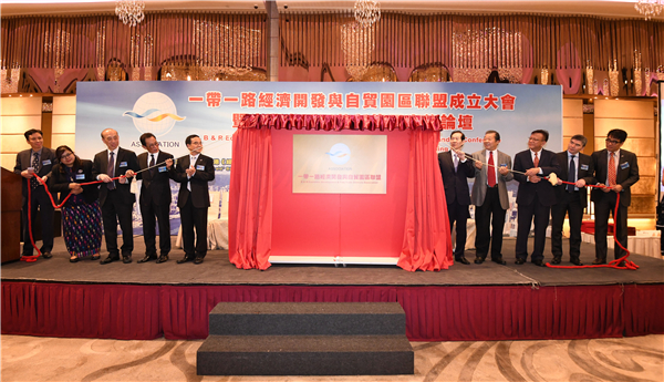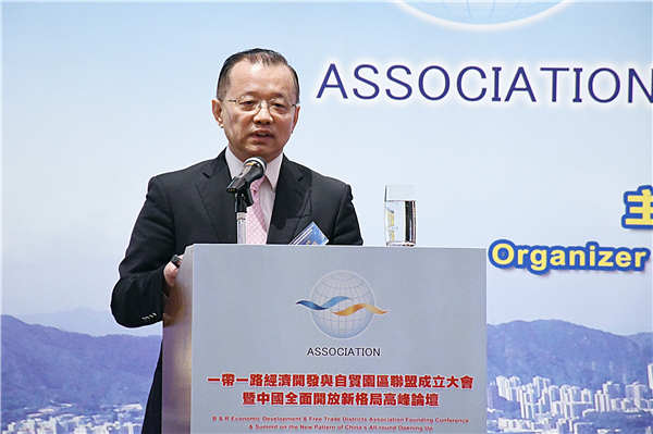 “一带一路经济开发与自贸区联盟”成立大会暨中国全面开放新格局高峰论坛,获来自内地、香港、台湾的政商学界企业界知名人士,以及驻港领事人员,见证联盟成立。记者 冯瀚文 摄