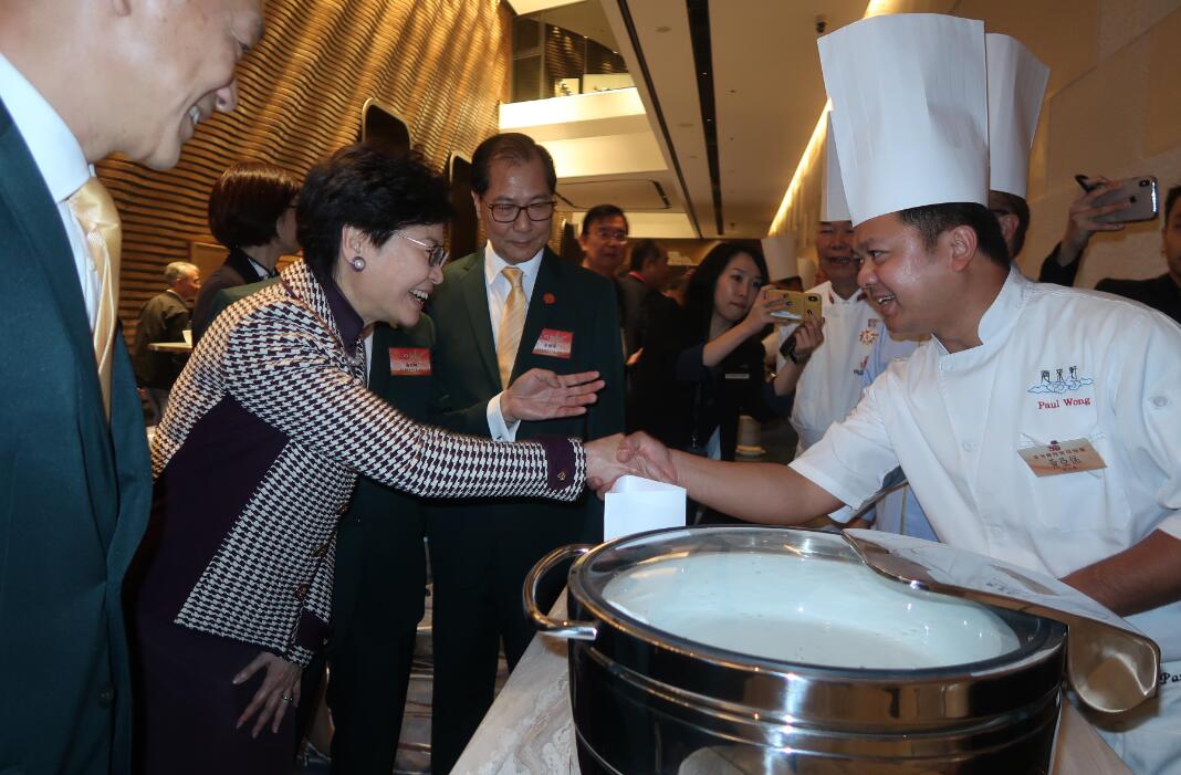林鄭月娥在百忙中抽空出席,觀看了該會特別製作的會慶微電影及該會30年精華回顧,逐一欣賞了該會廚師委員會的廿多位城中名廚的拿手精彩美食。張建宗則出席餐協會慶晚宴,他在致辭時表示是當天第八項公開活動,發表演辭的第七篇,全場報以熱烈掌聲。張建宗向該會主席梁振華頒發了15屆會董委任狀,向香港中華煤氣公司營運總裁黃維義頒發了「中餐最佳能源夥伴貢獻大獎」及「香港傑出企業家大獎」,又頒發了「世界中餐傑出醬料品牌企業領袖大獎」予李錦記醬料集團主席李惠中,頒發了「世界中餐醬料領導企業貢獻大獎」予李錦記醬料集團,頒發了「長期支持合作夥伴獎」予香港天廚味精有限公司,最後見證了各飲食商會參與的「引進FH5001:2013食品體係」,以提升香港餐飲食肆的食品衛生和安全標準項目啟動禮簽署儀式。
