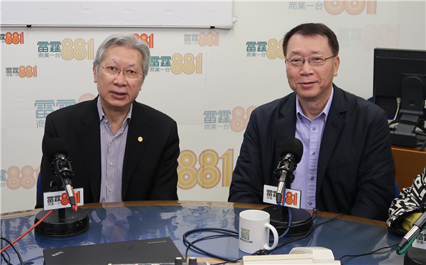 雷鼎鸣(右)及刘达邦在电台节目表示,中美贸易冲突将长时间延续。