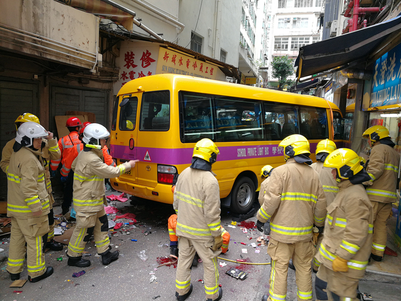 銅鑼灣消防局局長郭威信表示,接報後派出9輛消防車及15輛救護車,82名消防及救護員到場,並派出坍塌搜救專隊到場救援。他表示,消防到場時發現2男1女途人被困在校巴車底不同的位置,昏迷不醒,其中一名女傷者在校巴右邊車胎附近,另外兩名男子分別在車底中間位置及夾在右邊車頭,消防耗時20分鐘將3人救出,另有一名80歲女途人當場死亡。由於傷者眾多,東區醫院流動醫療隊亦奉召到場協助,將12名傷者分批送往東區醫院及律敦治醫院搶救,當中3人搶救後死亡。