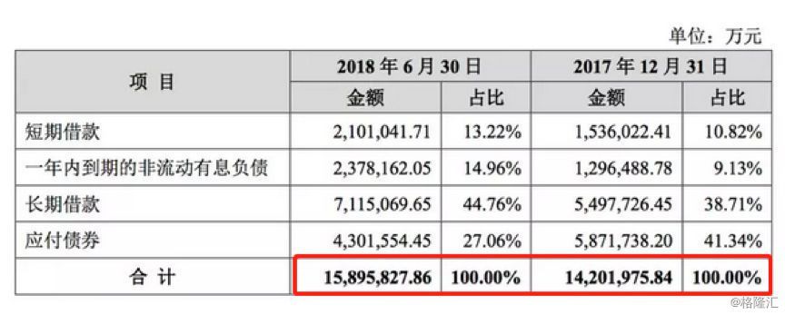 以富力地产为例,根据公司2018年11月底公布的相关债券募集说明书,截止2018年6月末富力的有息负债高达1589.58亿元,较2017年末增长了169亿元。