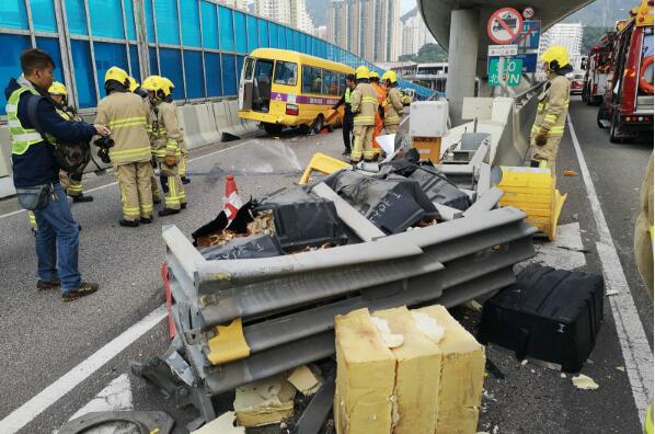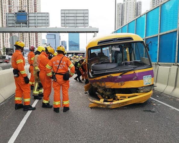 【香港商报网訊】观塘绕道发生交通意外。一辆载有学童的校巴沿观塘绕道行驶,驶至丽晶花园对外时失控撞壆,車上9人受傷。警方正在现场调查意外肇因。
