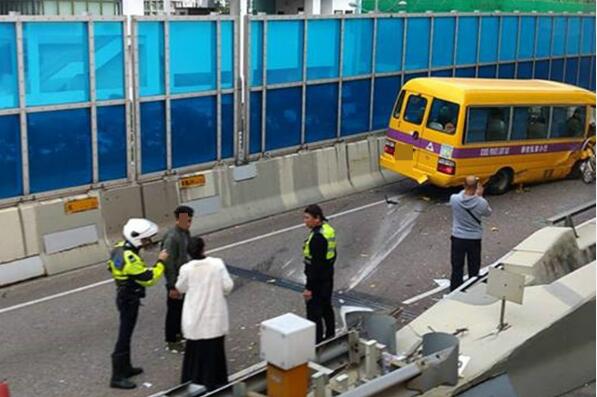 事發在早上7時許,一辆校巴沿观塘绕道往沙田方向快线行驶,驶至丽晶花园对开时疑被切线,失控落至另一条往旺角方向的支路,随後撞向路边风琴式防撞栏再撞向石壆。校巴车头严重损毁,司机一度被困,由消防救出;车上一名女保母受伤半清醒,由救护人员送院治理,现已回复清醒;车上7名学童受轻伤。