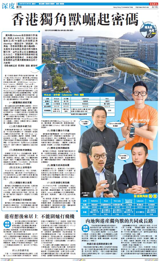【香港商报网讯】記者蔡清偉 潘晶 鄺偉軒报道:獨角獸(Unicorn)是投資銀行界術語,指成立10年之內、估值已達10億美元(約78億港元)的初創企業(StartUp),隨着近年「新經濟」的興起,香港創業圈生態日趨成熟,先後有多家初創企業成功晉身獨角獸行列。這些企業立足互聯網迅速壯大自己,更懂得利用最新科技建立起跨國界經營模式。本報記者探索與概括這些獨角獸脫穎而出的十大密碼。