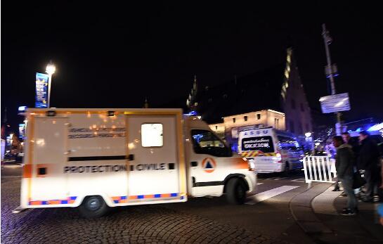 法国紧急救援车辆进入斯特拉斯堡圣诞集市枪击现场。(环保署)