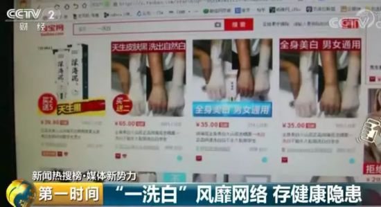 都说一白遮百丑,拥有白皙透亮的皮肤是很多爱美人士心心念念的追求。最近,一款号称“一洗白”的美白神器,受到不少女性朋友的追捧。视频拍摄者把产品涂抹在一只胳膊上,随即用清水冲洗,接下来就是见证奇迹的时刻:使用过“一洗白”的皮肤立马变白了许多,两只膀子一黑一白,形成鲜明的对比。看完这段视频,爱美人士纷纷表示毫无抵抗之力,留言区更是被“求商品链接”的回复刷爆了。虽然这一视频并没有呈现产品的厂家、商标等信息,但这并不妨碍网友们自行搜索,一时间,各种试用“一洗白”的视频爆红网络,这款产品也迅速成为电商网站上的爆款。