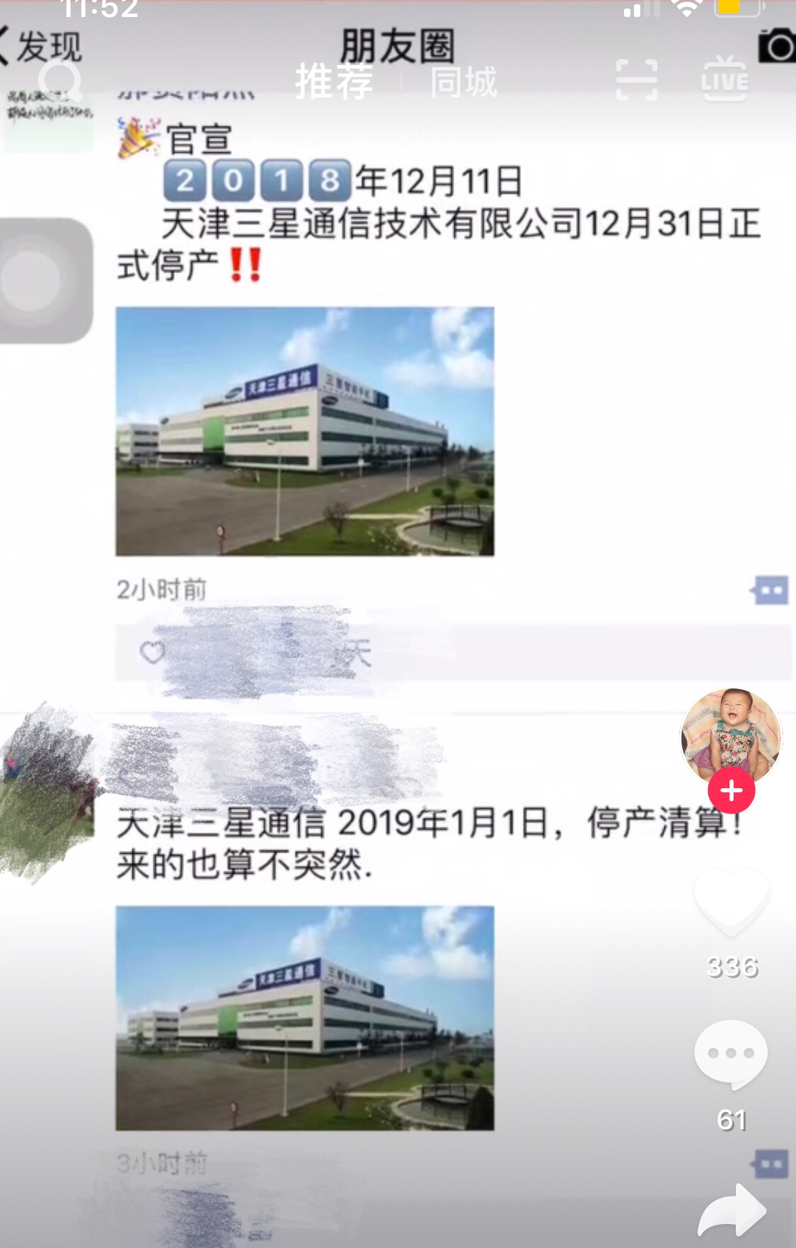 中新经纬客户端12月12日电(常涛)12日上午,中新经纬客户端从社交平台及相关人士处获悉,韩国三星电子位于天津的手机制造工厂,即天津三星通信技术有限公司将于12月31日正式停产。有员工对中新经纬客户端表示,消息是昨天(11日)刚宣布的,书面通知还没有,关于工厂两千名左右员工的确切赔偿也没说。