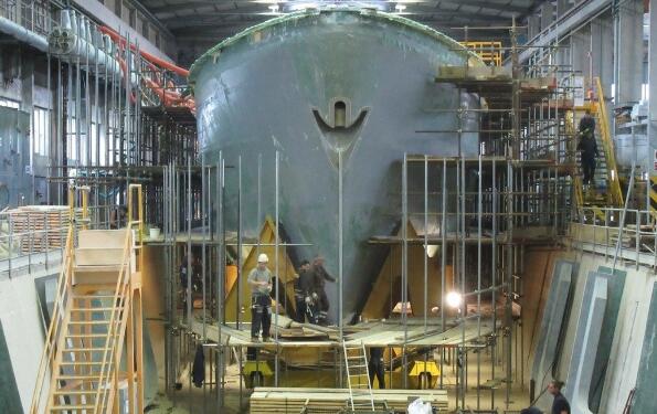 台军建猎雷舰遭庆富造船厂诈骗150亿新台币(约33.4亿),图为在意大利建造的舰体空壳。图源:庆富造船厂