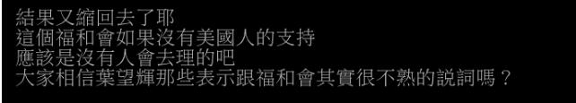 如今快半年过去,一直给人“默认”印象的叶望辉突然表明立场,坚称自己对此不知情,与“福和会”毫无联系,这一系列“自打脸”的行为,引来台湾网友的“群嘲”:“(叶望辉)又缩回去了耶。大家相信他那些表示和‘福和会’其实很不熟的说辞吗?”