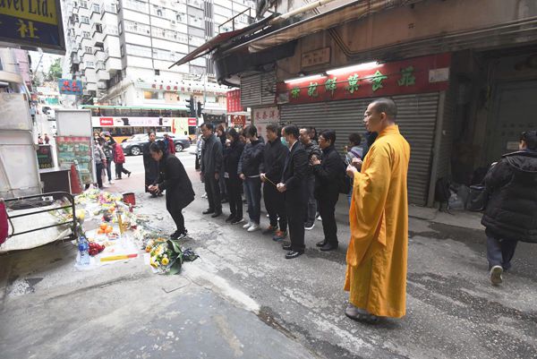 當日陪同何婆婆途經事發現場的印傭,當日於意外後哭着尋找主人,其後獲悉婆婆當場喪命後,情緒激動傷心哭坐地上。印傭昨晨亦有到場拜祭,期間更傷心落淚,悲慟不已,一行人逗留約一小時後離去。至下午3時許,83歲死者梁洪家屬到現場拜祭。其子表示,當日父親正往交電話費,未料飛來橫禍,至今仍未將消息告之母親。