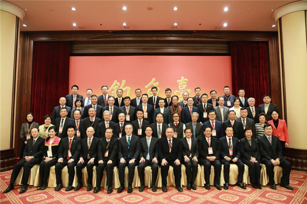 港澳办主任张晓明(前排中)会见了唐英年(前排左六)率领的香港友好协进会访京团。港澳办网站图片