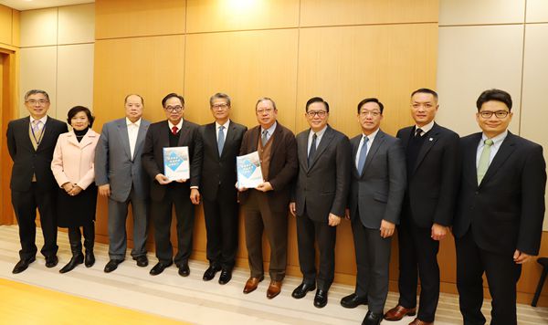 經民聯領導層昨與陳茂波(左五)會面,就財政預算案提建議。