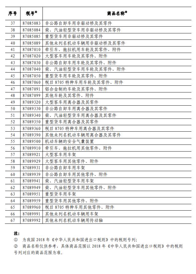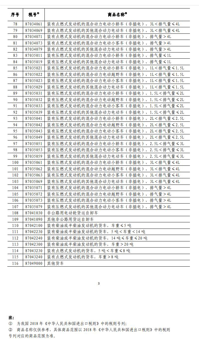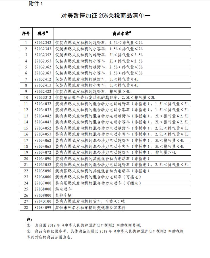 当地时间2018年12月1日晚,在二十国集团领导人布宜诺斯艾利斯峰会期间,习近平主席应邀同美国总统特朗普举行会晤,就中美经贸问题达成了重要共识。为落实两国元首共识,根据《中华人民共和国对外贸易法》《中华人民共和国进出口关税条例》等法律法规和国际法基本原则,经国务院批准,国务院关税税则委员会决定从2019年1月1日起,对原产于美国的汽车及零部件暂停加征关税3个月,涉及211个税目。