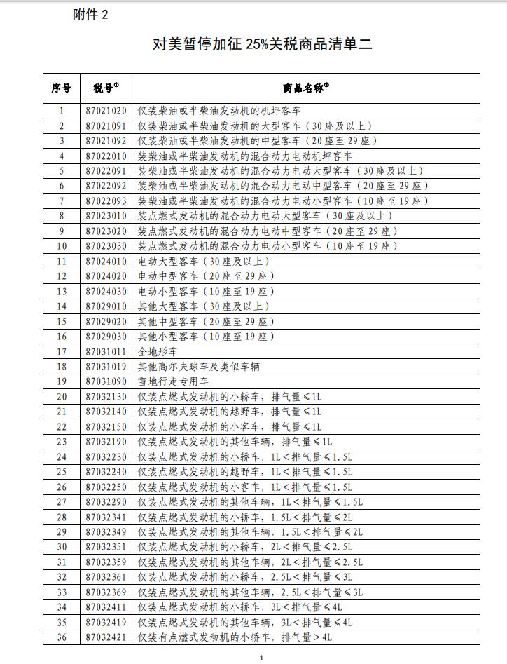 国务院关税税则委员会关于对原产于美国的汽车及零部件暂停加征关税的公告