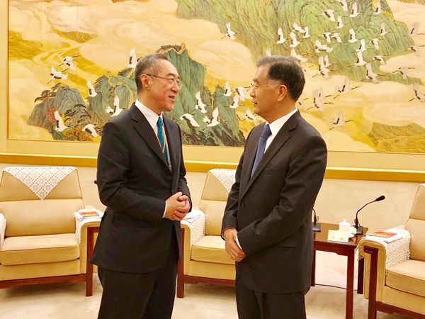 汪洋(右)昨接見了友協會長唐英年(左)一行。