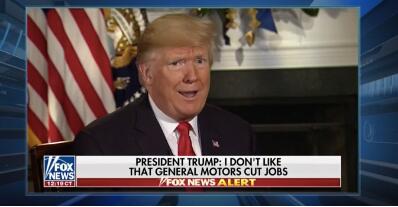 据美国新闻网站“CNBC”当地时间12月13日报道,当天,特朗普在接受福克斯新闻(Fox)采访时,说通用的转型不会成功,而在圣诞节前告诉他关工厂的消息更是“不能接受”。他还威胁说, “通用不会好过的(General Motors is not going to be treated well)”。