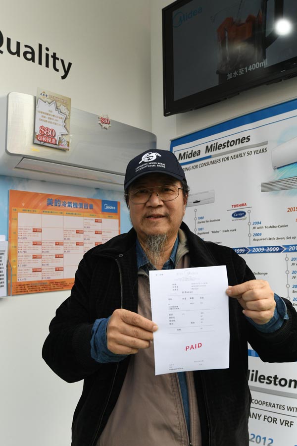 陳先生成功以80元購得冷氣機。 記者 馮俊文攝