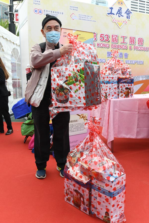 【香港商報網訊】記者何加祺報道:第53屆工展會昨日開鑼,未開幕前已有大批市民在場外排隊,等候入場搶購平貨。行政長官林鄭月娥在出席開幕禮後亦到會場「掃貨」,花費約2500元。今年不少參展商推出「超平價」的限量優惠貨品,其中有市民在開幕前2天已到場排隊,成功以80元購得價值8000元的「工展80周年震撼福袋」,個個笑逐顏開。