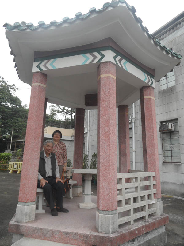 蔡廷鍇之長孫蔡醒民(左)偕女重遊舊地,坐在涼亭回憶祖父在香港事迹。