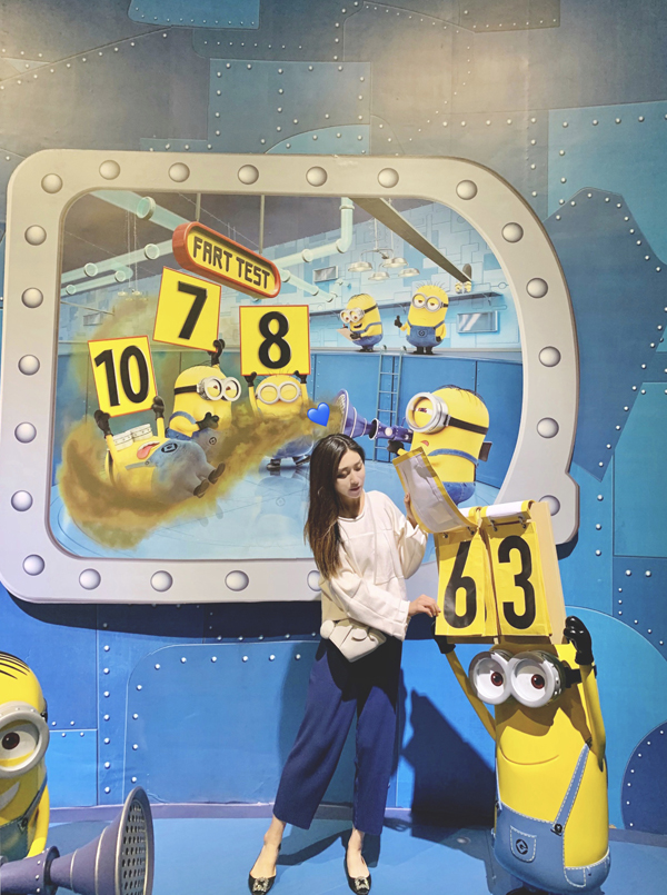 《神偷奶爸大视界全球首展》占地面积总计4,000平,打造了3个楼层、7大互动体验展区,首次还原《神偷奶爸》系列动画电影的经典片段和场景。展览区域包括环壮剧院(Theater)、实验室通道(Hallway)、格鲁实验室(Gru’s Lab)、坏蛋区(Villains)、女孩们的房间(Girls‘ Room)、小黄人特区(Minios Zone)与商售区(Retail)。