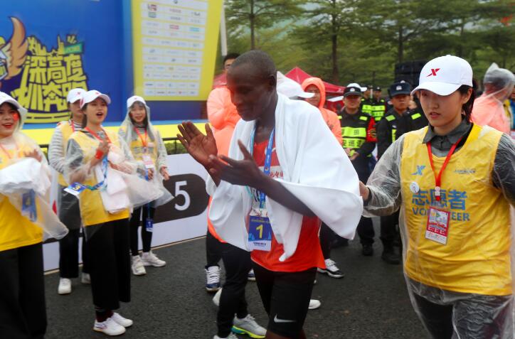 在起终点,由深职院20名礼仪队员组成气氛营造志愿者,早早便开始在现场排练。开赛前,他们手牵手,肩并肩,筑起人墙,分流参赛选手,为运动员加油助威。