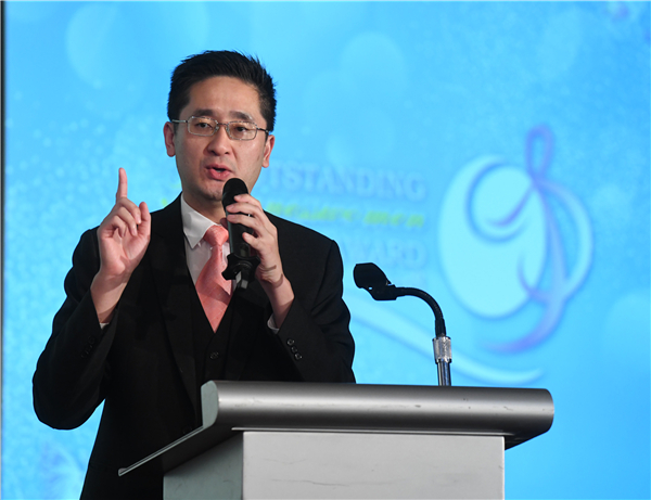 商務及經濟發展局前局長蘇錦樑(右)為獲奖者頒獎。