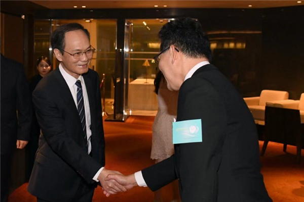 香港商報常務副社長、執行總編輯張寶興(左)与嘉賓握手交談。