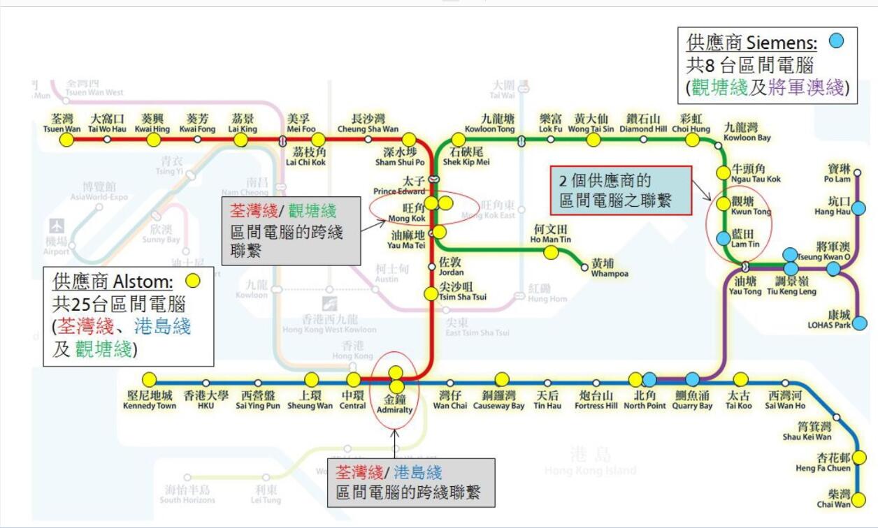 因應4線「齊冧」事故,港鐵早前成立高級別檢討委員會調查原因,委員會由港鐵車務總監劉天成及港鐵技術工程總監顏永文任主席,成員包括3名專家,港鐵昨午公布的報告內容指出,4條路線的信號系統分別由Alstom(佔觀塘線的大部分,以及荃灣線和港島線全線)及Siemens(佔觀塘線其餘部分,及將軍澳線全線)提供,兩者設備都按照同一套SACEM信號系統的功能標準設計,兩套系統經由設於觀塘站及藍田站的區間電腦作聯繫,由33部區間電腦互相聯繫,以便列車可跨線運作。