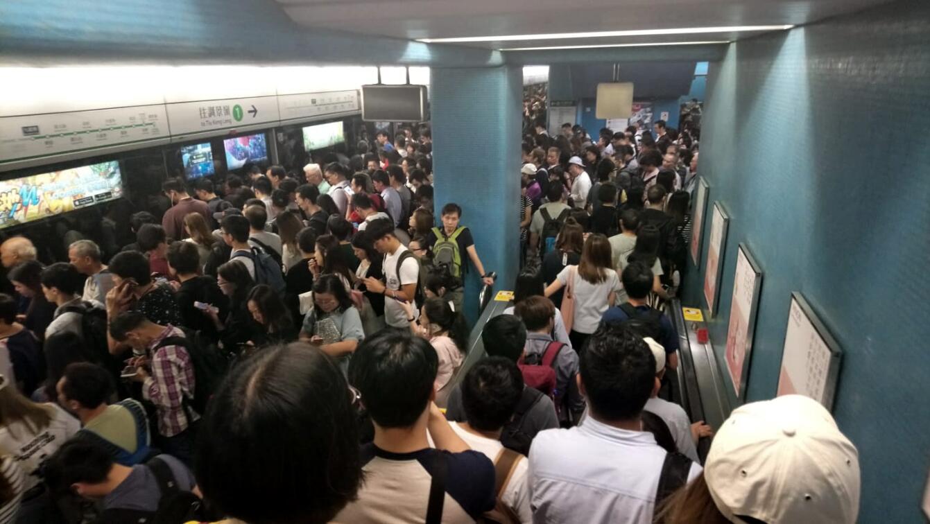 港铁当日4线齐故障,大批乘客被困月台及扶手电梯。