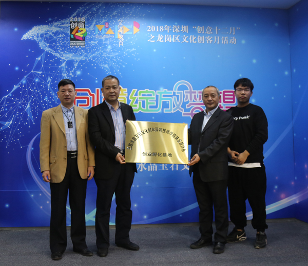 活动当日,由三联水晶玉石文化协会、深圳技师学院珠宝首饰系双方牵头,以培养和孵化产业人才、搭建校企合作基地、提供再就业服务的三联文化创意空间正式启用,深圳技师学院珠宝首饰系主任李勋贵、三联水晶玉石文化协会会长郑庆明及第六届会长李保玉,三联资深玉雕大师王树勋共同为三联文化创意空间举行揭牌仪式。同时,三联水晶玉石文化村与深圳技师学院珠宝首饰系合作的创业孵化基地进行了正式挂牌,这是继与深圳职业技术学院、深圳科迪技工学校后,三联进一步深入校企资源对接的又一工作成果。