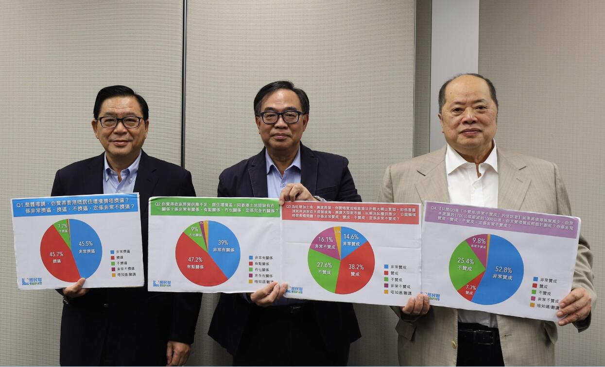 調查又顯示,九成受訪者認為,現時香港的居住環境屬於擠迫或非常擠迫;八成半受訪者認為房屋供應不足、居住環境差是與香港土地短缺非常有關係或有點關係。