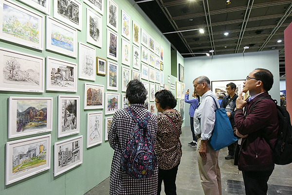 美術展中香港多年演變的畫作,吸引不少市民觀賞。