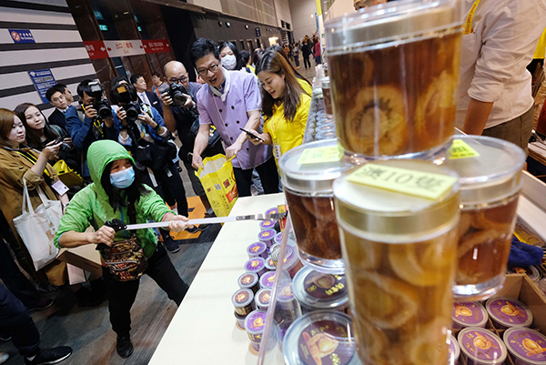 華泰海產攤位設有1元15秒內任夾鮑魚罐頭,不過項目規定每日首5位人士方可參加。首位市民成功於限時內夾到了7罐鮑魚,總值逾3000港元。公司總經理林容妮稱,由於擔心今年市道較淡靜,因此推出這遊戲作宣傳,以刺激消費。